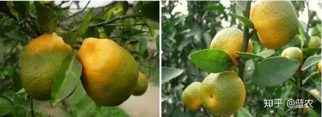 1、果子到了成熟期不一般轉(zhuǎn)黃:除了果柄附近,其它大部門仍是青的(也稱為紅鼻子果或青果或青頭果或不熟果)。目前通過果子癥狀來識別黃龍病已成為判斷黃龍病的次要辦法,也是判斷黃龍病最準(zhǔn)確、最快速的辦法。只要在樹上發(fā)現(xiàn)有果子呈現(xiàn)以下的癥狀,那么那整棵樹可能傳染黃龍病了。