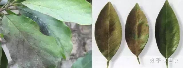 七、煤煙病發(fā)作在枝梢、葉片和果實上。發(fā)病初期,外表呈現(xiàn)暗褐色點狀小霉斑,后繼續(xù)擴大成絨毛狀黑色或灰黑色霉層。