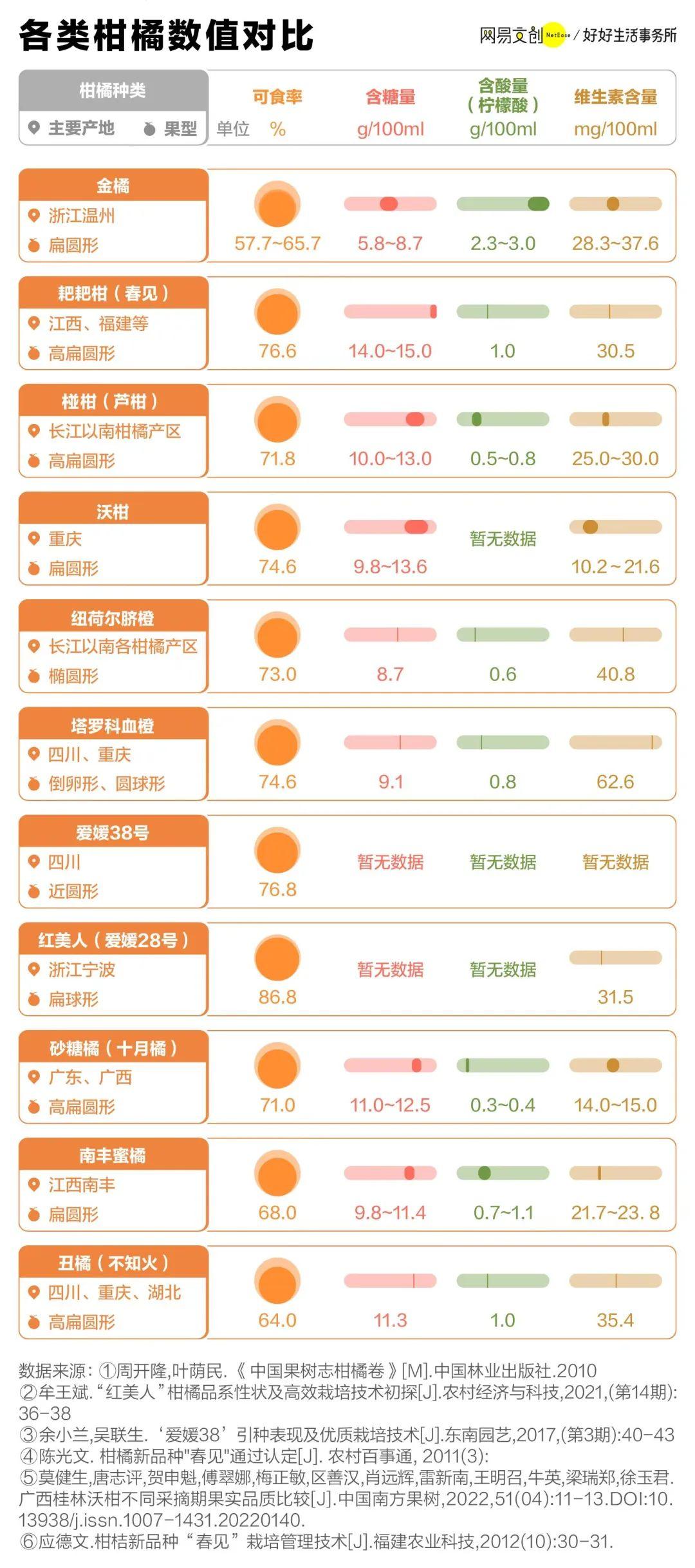 若何選對合適本身的柑桔,我們整理了一份市道上熱門柑桔的數(shù)據(jù),能夠做購置時的參考。若是想吃酸一點的,能夠選金橘,想要甜一些的,能夠選砂糖橘、紐荷爾柑桔和血橙。