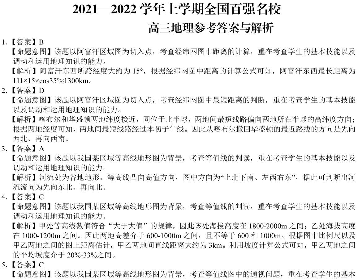 讀我國西北地界區(qū)剖面地量圖(單元:米),發(fā)問3~5題。