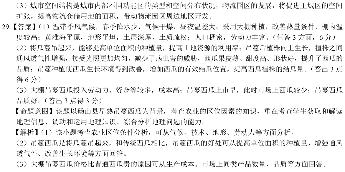 (3)揣測碭山縣大棚吊蔓西瓜價格比通俗西瓜貴的原因。(3分)
