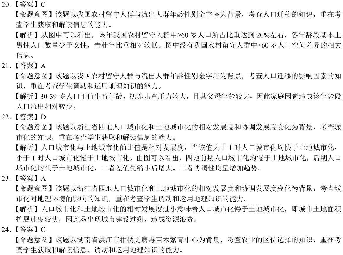 右圖是2016年我國農(nóng)村留守人群與流出人群年齡性別金字塔,依此發(fā)問20~21題。