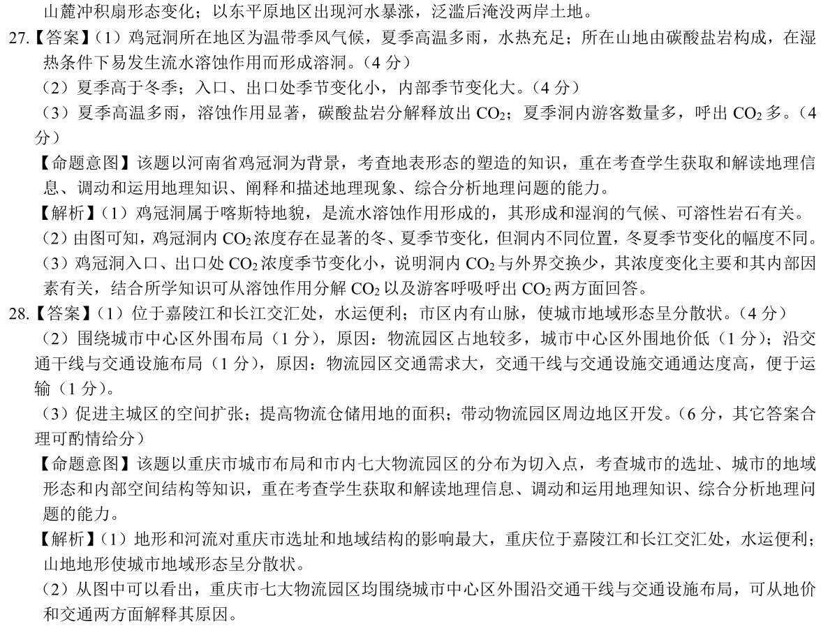 28.天然前提對城市選址和地區(qū)形態(tài)有很大影響。右圖起身重慶市的城市規(guī)劃和市內(nèi)七大物流園區(qū)的原產(chǎn),依此順利完成下面問題。(14分)