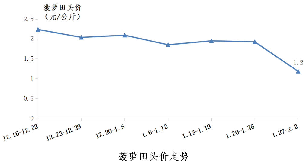 曲枝橋頭價(jià)同比上升,歲暮升至該季高點(diǎn)。1月曲枝橋頭價(jià)呈先升后降趨向,月初受東北、華北地域嚴(yán)寒氣候情況負(fù)面影響,北銷接貨不順暢,大盤欠安;10日起南方嚴(yán)寒氣候情況逐步散去,以致新年補(bǔ)庫(kù)推升,南方參展商北上橋頭訂貨活潑,曲枝橋頭價(jià)有所回暖;但下旬受新年補(bǔ)庫(kù)完畢及新式流感病毒禽流感負(fù)面影響,曲枝橋頭價(jià)大幅上升,至歲暮升至該季高點(diǎn)。1月曲枝好果、統(tǒng)果橋頭價(jià)別離為3.1元/千克和2.6元/千克,同比別離上升31%和29%,同比別離上升22%和20%。興隆貢柑 *** 上市Messei部分漿果“退糖”,大盤上升。1月興隆貢柑 *** 上市近尾,且因興隆相對(duì)濕度整體相對(duì)較低,部分貢柑LT面對(duì)退糖返青現(xiàn)象、產(chǎn)物品量上升,以致清遠(yuǎn)等周邊主產(chǎn)區(qū)貢柑大盤穩(wěn)步偏低,參展商隆重訂貨,興隆貢柑橋頭價(jià)未能隨新年補(bǔ)庫(kù)提拔。下月興隆貢柑好果橋頭價(jià)4.9元/千克,環(huán)上中游21%、同上中游18%,統(tǒng)果橋頭價(jià)3.8元/千克,環(huán)上中游低22%、同上中游19%。小果比例較低,龍門縣貢柑大盤穩(wěn)步疲軟。參展商需求以大果為主,但龍門縣主產(chǎn)區(qū)受旱災(zāi)負(fù)面影響小果比例較低,大盤難以推升。1月龍門縣貢柑延續(xù)12月以來疲軟大盤,統(tǒng)果橋頭價(jià)2.4元/千克,環(huán)上中游30%。鎮(zhèn)遠(yuǎn)柑桔橋頭價(jià)連結(jié)相對(duì)平穩(wěn)。1月下旬鎮(zhèn)遠(yuǎn)柑桔已根本上栽種完,憑仗柑桔優(yōu)良的耐貯性和本地穩(wěn)步晴熱氣候情況助力,該季鎮(zhèn)遠(yuǎn)柑桔橋頭價(jià)自 *** 上市以來不斷連結(jié)不變,下月橋頭價(jià)6元/千克,環(huán)上中游0.8%、同比增9%。新式流感病毒負(fù)面影響,年后椰子橋頭價(jià)跌幅較大。下月上旬至下旬因?yàn)槟戏絿?yán)寒氣候情況負(fù)面影響,參展商北上受阻,椰子大盤較上月小幅上升;年后受新式流感病毒禽流感負(fù)面影響,椰子市場(chǎng)接貨明顯減緩,大盤上升明顯。據(jù)椰子培訓(xùn)基地監(jiān)控,下月椰子優(yōu)良果橋頭價(jià)1.8元/千克、統(tǒng)果1.6元/千克,橋頭均價(jià)1.7元/千克,同比上升19%,同比提拔33%。據(jù)省蔬果定點(diǎn)市場(chǎng)數(shù)據(jù),下月椰子市場(chǎng)批發(fā)價(jià)3.2元/千克、環(huán)上中游8%。香蕉橋頭價(jià)行跌上升。據(jù)香蕉培訓(xùn)基地監(jiān)控,受冬季香蕉成熟偏慢、供給削減負(fù)面影響,下月香蕉大盤行跌上升,橋頭價(jià)2.2元/千克,同比增15%,但因整體供給量同比提拔,同比仍大幅上升48%;據(jù)省蔬果定點(diǎn)市場(chǎng)數(shù)據(jù),香蕉市場(chǎng)批發(fā)價(jià)4元/千克,環(huán)上中游2%、同上中游25%。其他次要蔬果中,柑、橙、桔、柚批發(fā)價(jià)別離為5元/千克、6.7元/千克、5.1元/千克和5.9元/千克,同比增長(zhǎng)20%、13%、8%和5%;梨、葡萄、蘋果別離為3.8元/千克、13元/千克和8.5元/千克,同比增15%、15%和9%;菠蘿、西瓜別離為7.4元/千克和4元/千克,同比增17%和5%。